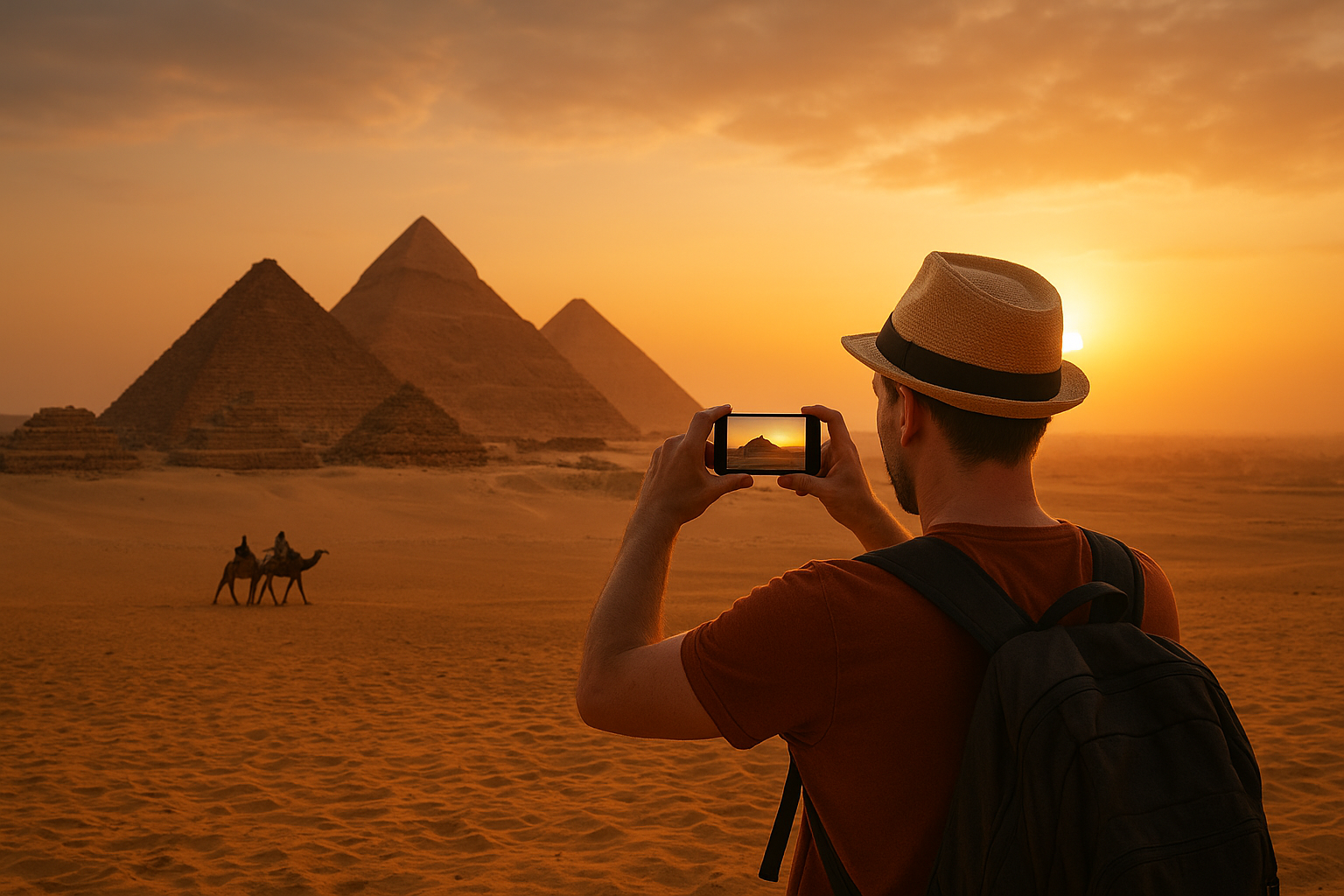 (Insert image: “Tourist riding camel near the Sphinx”)